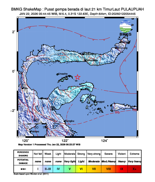 Gempabumi M 5,2 mengguncang Jayapura tidak berpotensi tsunami
