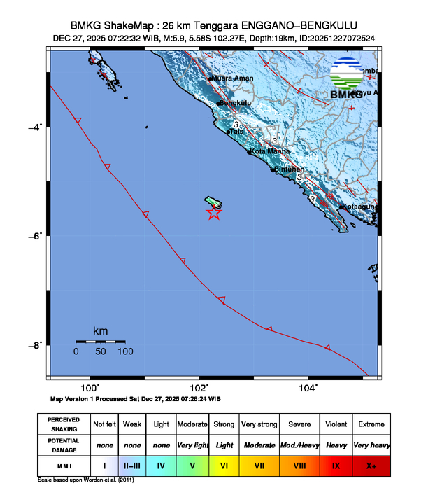 Lokasi Gempa26 km Tenggara ENGGANO-BENGKULU