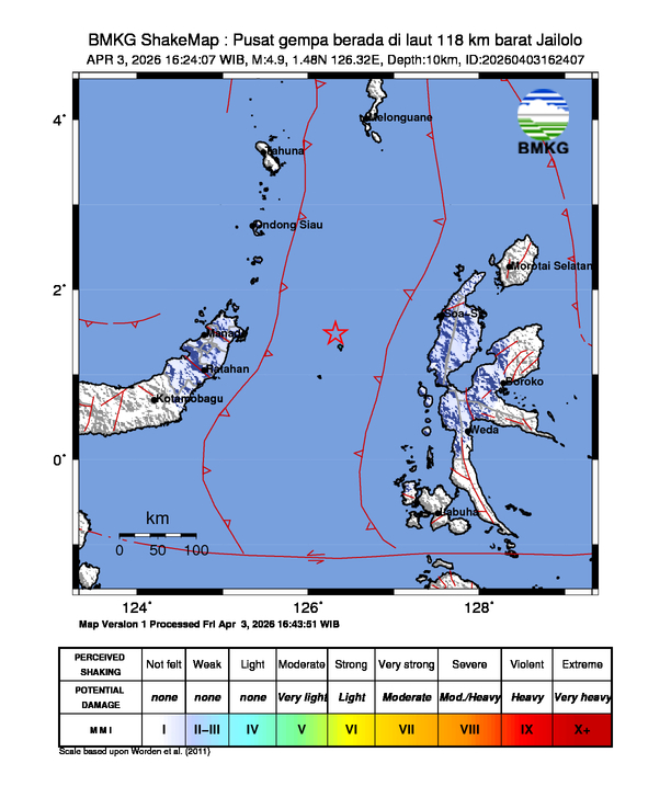 Hingga pukul 00.50 WIT, hasil monitoring BMKG belum menunjukkan adanya aktivitas gempabumi susulan (aftershock).