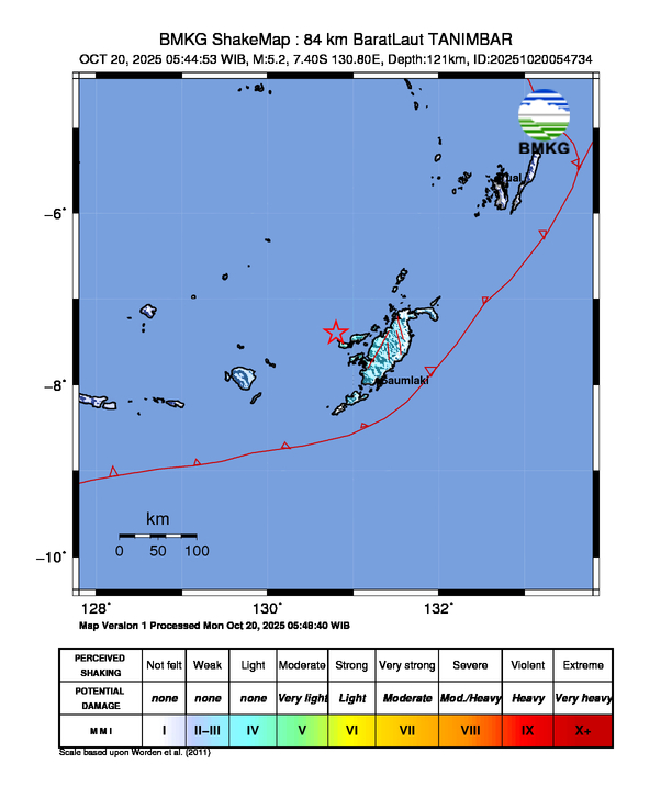 Waktu Gempa 20 Okt 2025,05:44:53 WIB